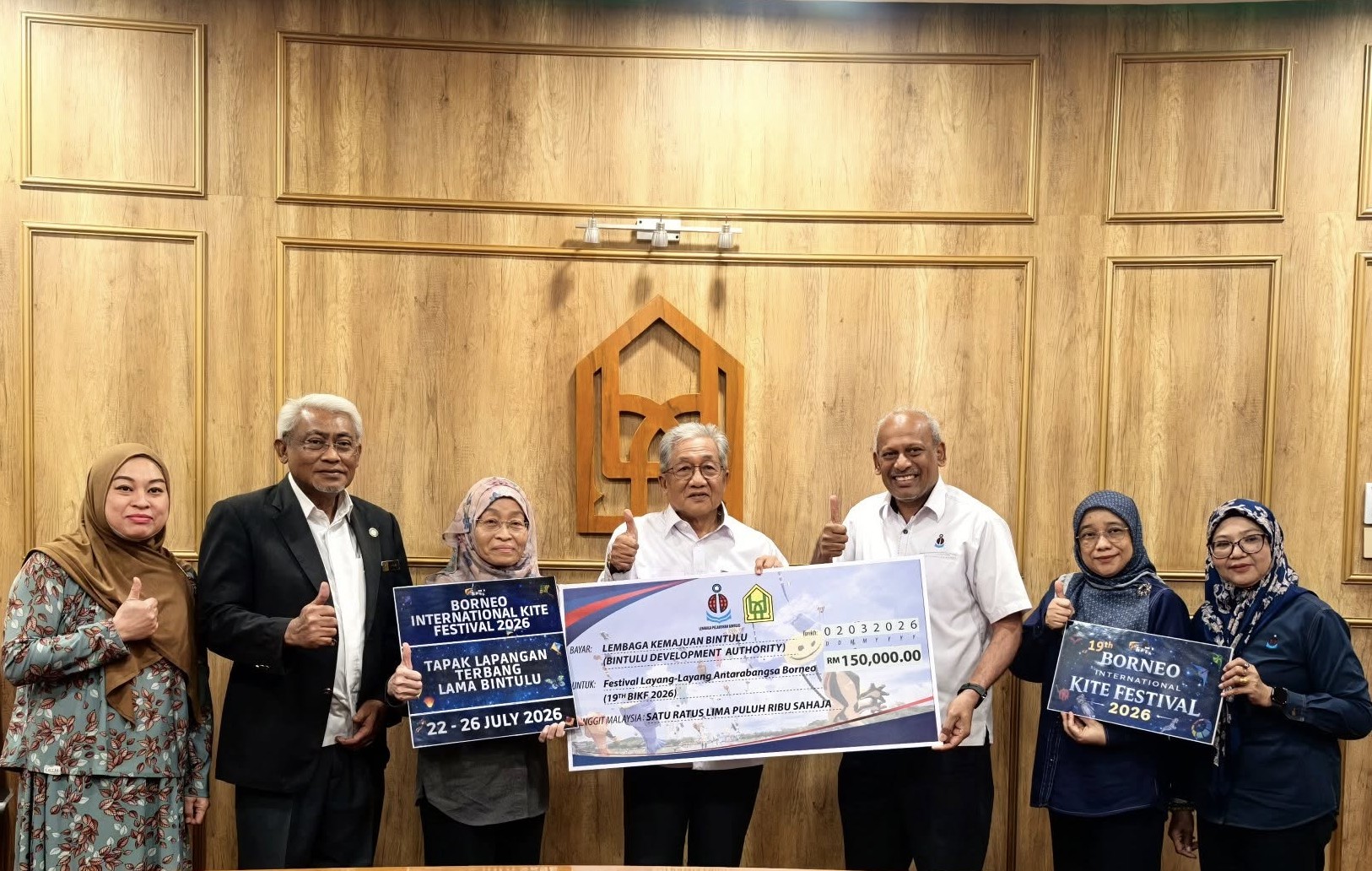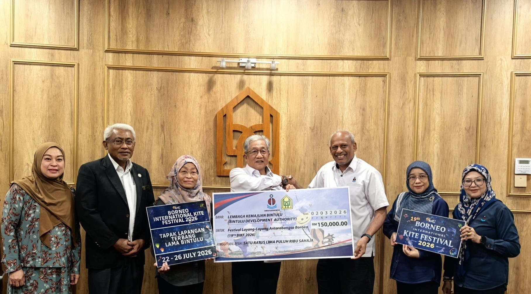 2 March 2026, Bintulu – A cheque presentation ceremony was held for a contribution amounting to RM150,000 from the Bintulu Port Authority as a strategic partner in support of the organization of the Borneo International Kite Festival 2026, which will take place from 22 to 26 July 2026.